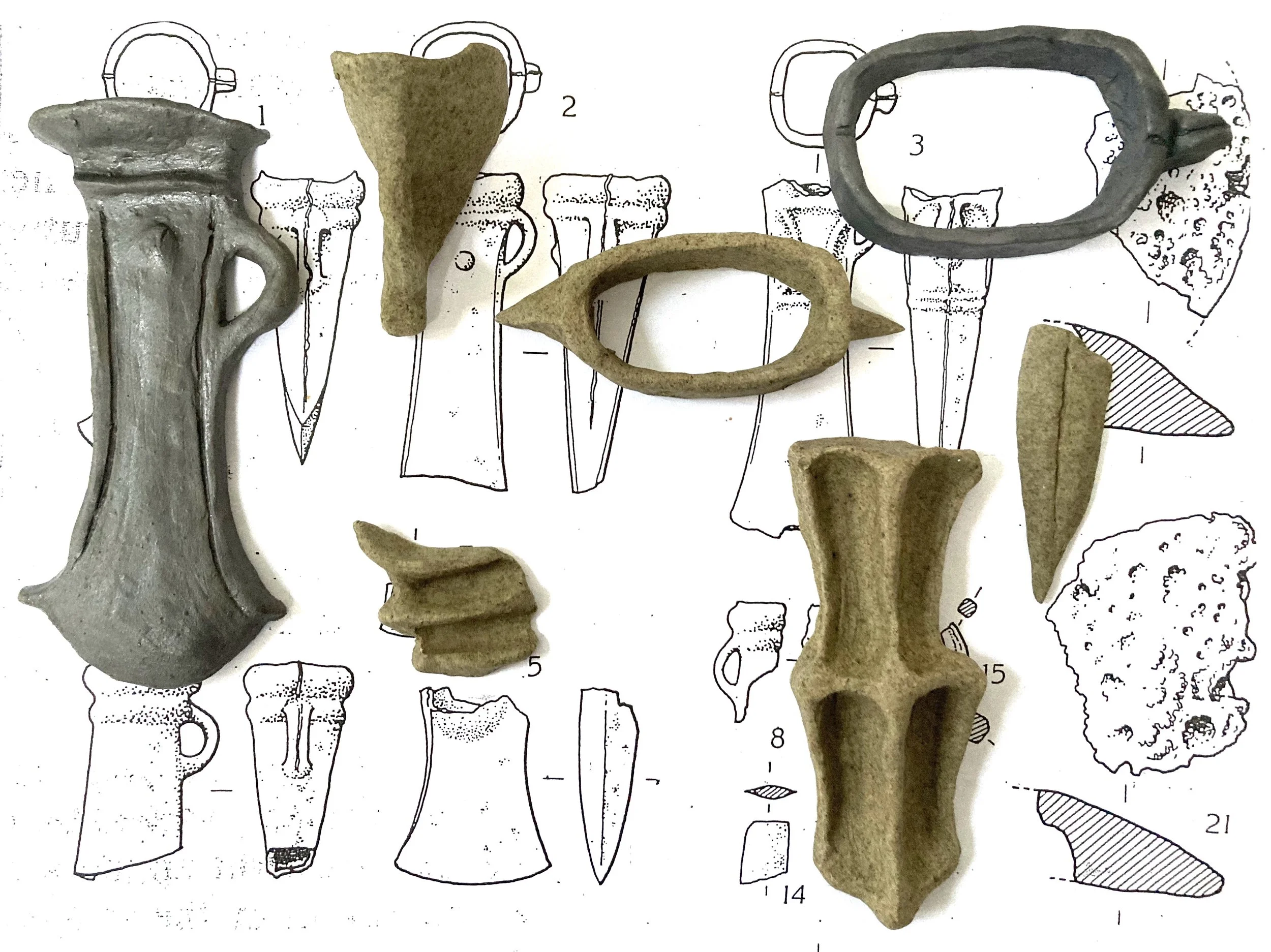 The clay artefacts made in response to this walk are inspired by a late Bronze Age hoard found on the Shuart site.