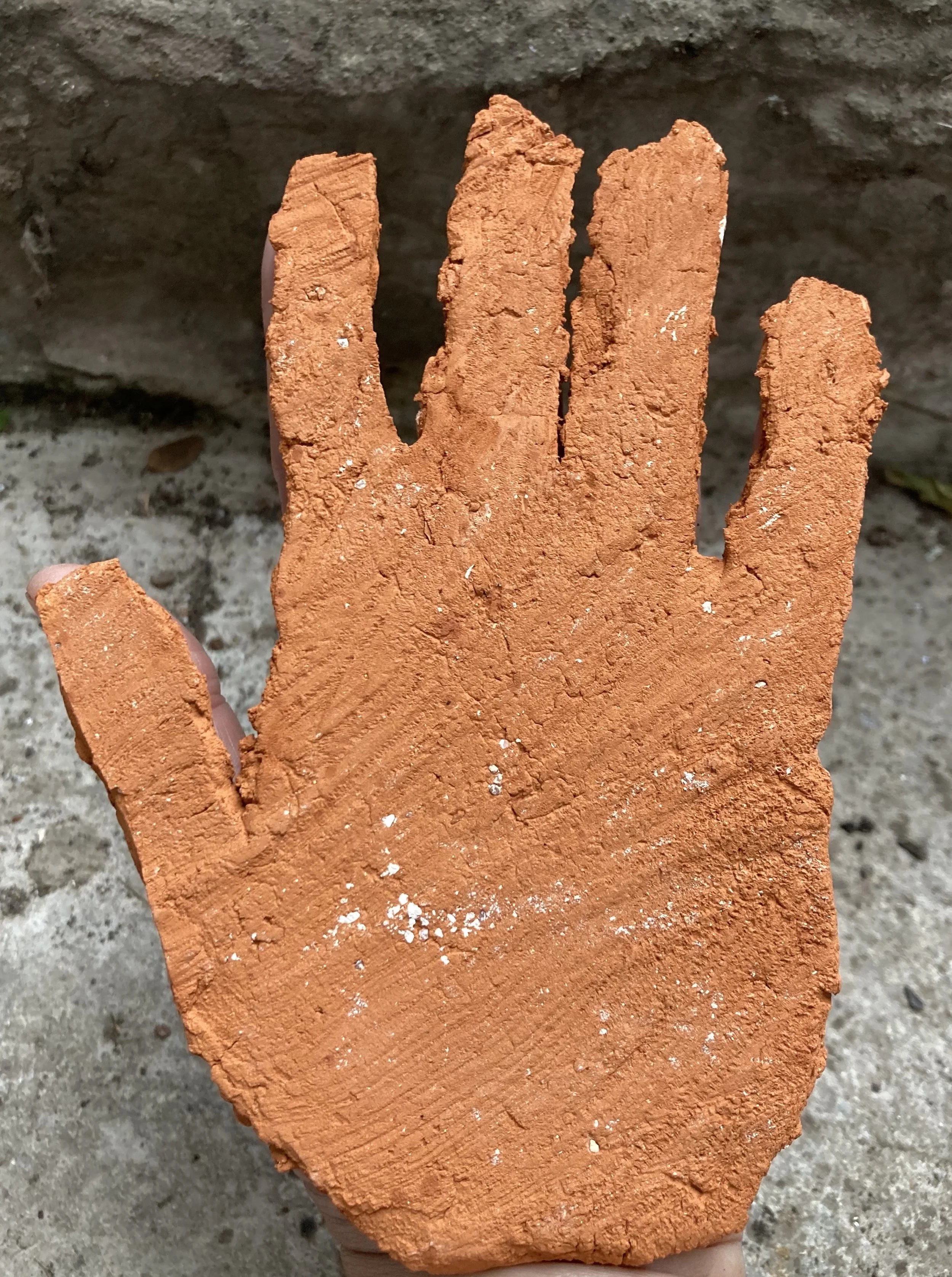 Trillo uses walnuts for dye and texture, clay dug from the stump of a pine tree to create handmade tools which distribute cherry stones and the petals of lilies and roses to dye an oversized apron and glove. She honours an ephemeral matrilineal history of craft and handiwork whilst referencing specific stories such as Jean Cocteau's film La Belle et La Bête which uses the metaphor of the glove to speak of protection and transformation. Here Trillo’s glove reflects the distance between humanity and the natural world; a longing to hold and collect, combined with a fear of our role within nature.