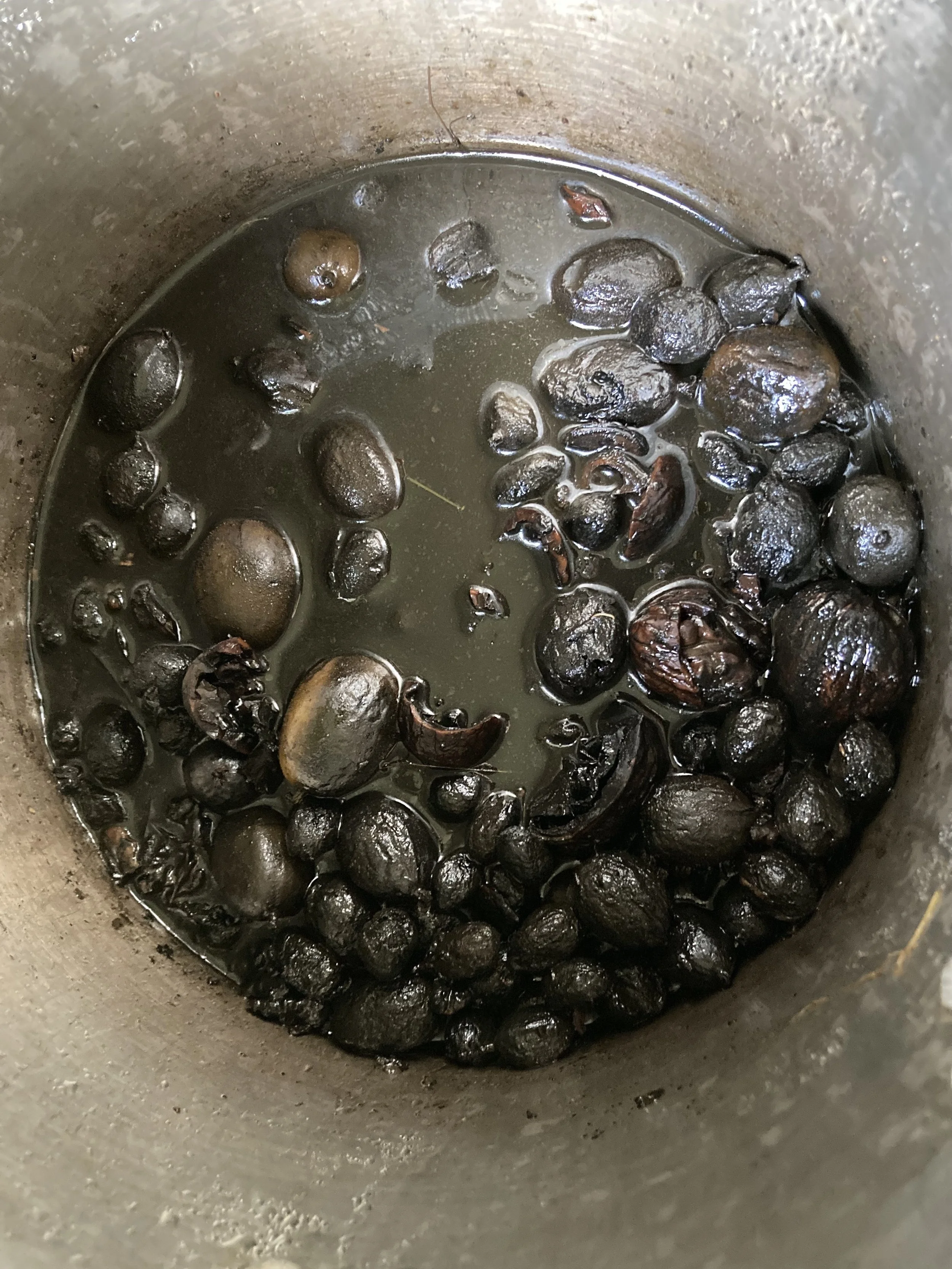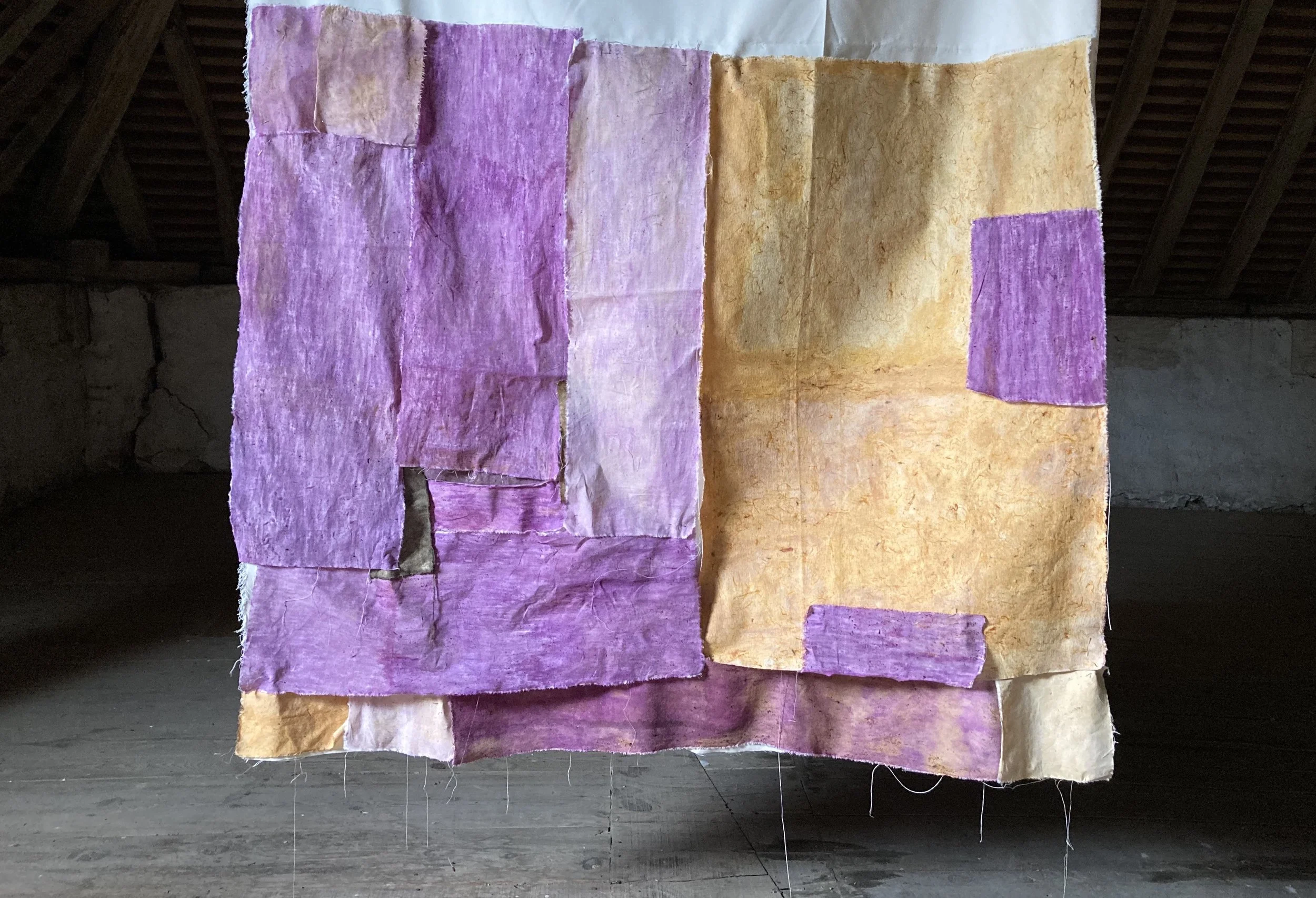 Trillo’s work is site-specific and intimate. It has developed from listening to local bird calls, scrutinising the sky for subtle weather shifts and the impact of this on the surrounding vegetation, gathering decaying flower heads and fallen fruit, crushing, cracking, simmering her findings to alchemise them into materials. She uses the materials of the gardens of Sacy to reflect the history of the surrounding landscapes drawing connections with the Roman remains at Champlieu and the Forêt d’Halatte. The magic of this process is intensified by the fact that Sacy is an oasis of biodiversity surrounded by miles of monofarmed land.